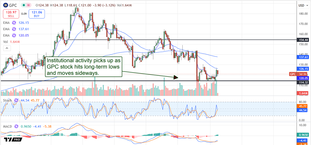 Institutional investors are buying the stock in Q1 and helping to put a floor in the market. Their activity has been bullish on balance since Q4 2023 and ramped to a new high in 2025. The institutional activity in the first six weeks of 2025, when GPCs stock price hit long-term lows, spiked to a multiyear high dating to before 2020, netting 4% of the stock. Analysts’ sentiment also suggests a bottom for this market, rating it as a hold and forecasting a 15% upside at the consensus estimate.
