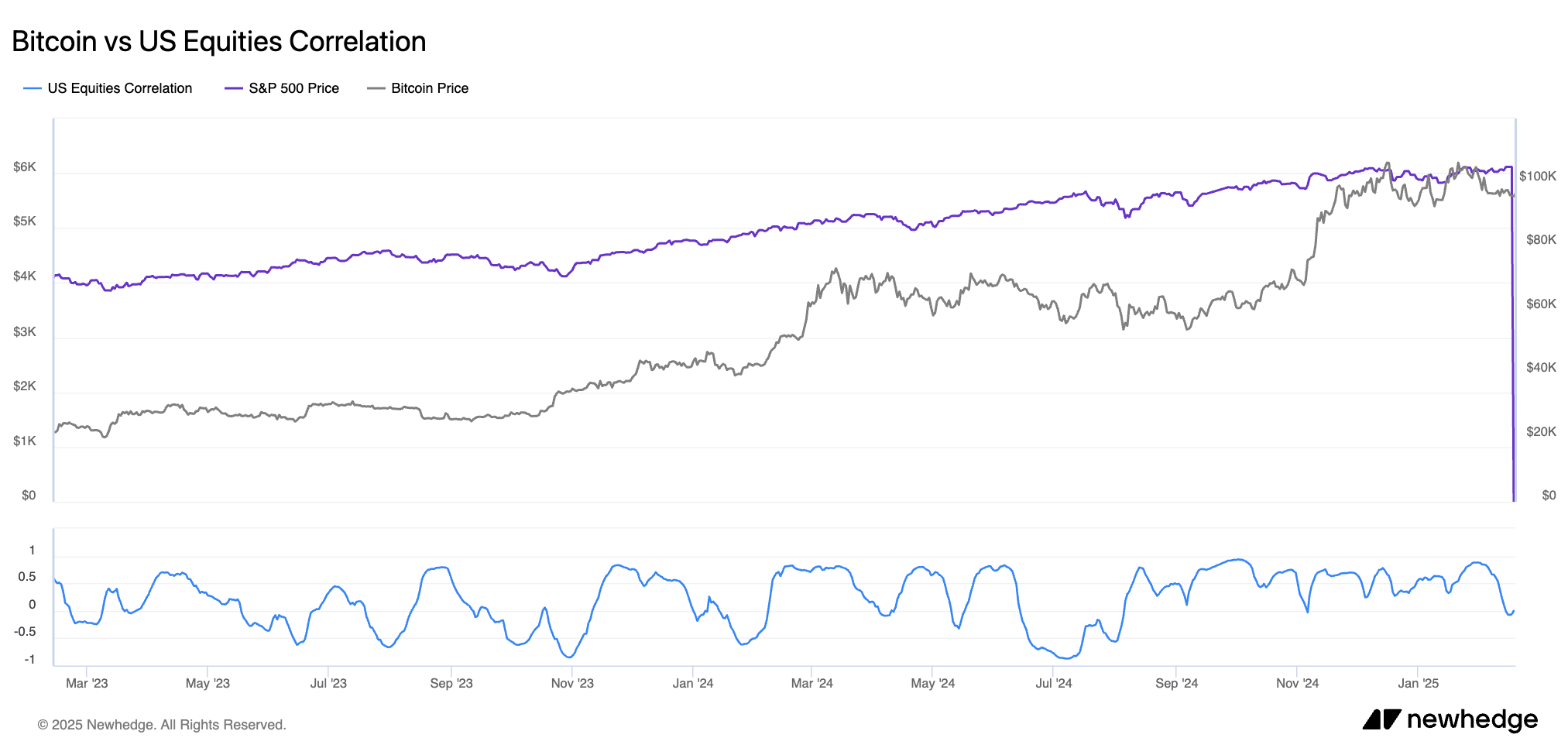 The soaring stock market may be a signal that investors have embraced a risk-on sentiment, which may push some to the cryptocurrency market. Recently, however, the correlation that existed between Bitcoin and the S&P 500 index has eased, as shown below.