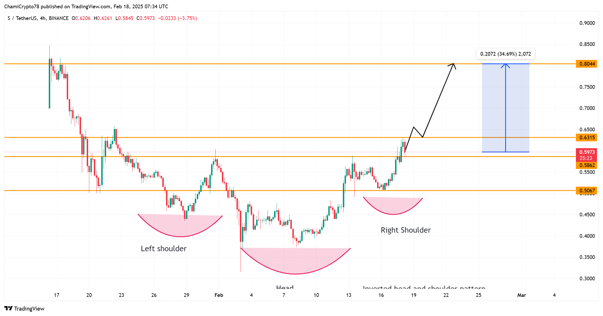 Given the current bullish price action, rising sentiment, and completion of an inverse head-and-shoulders pattern, Sonic has strong growth potential.