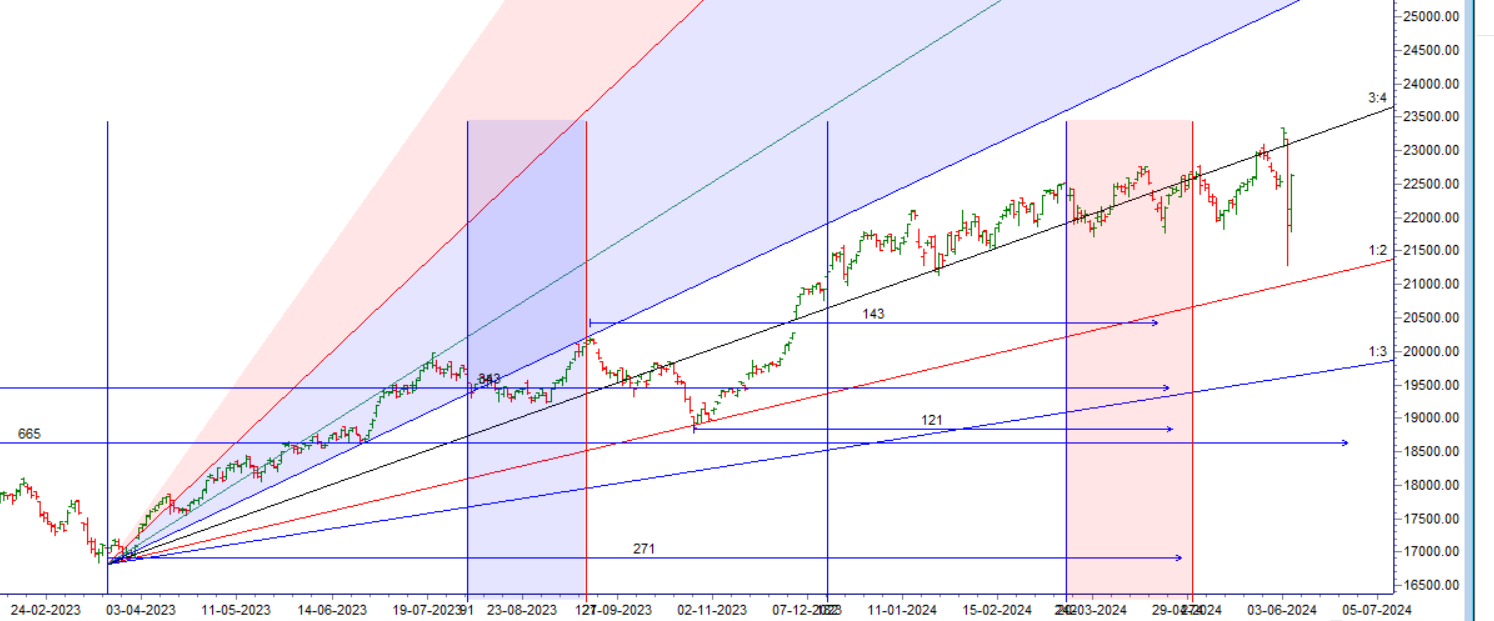 Nifty cracked today based on gann and astro studies as shown in below video. Downside till 21000 is still open till we are below 22300 levels. Tommrow again important astro date “Bayer Rule 15: VENUS HELIOCENTRIC LATITUDE AT EXTREME AND LEAST SPEEDS FOR MAJOR MOVES Imp Rule” so first 15 mins high and low will guide for the day.
