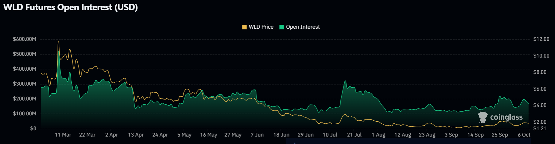The open interest of WLD for July jumped from $100 million to over $300 million. This excessively rapid surge suggests a heightened market interest, coinciding with the modest price increase for the same period. The sudden surge indicates an influx in its speculative capital.