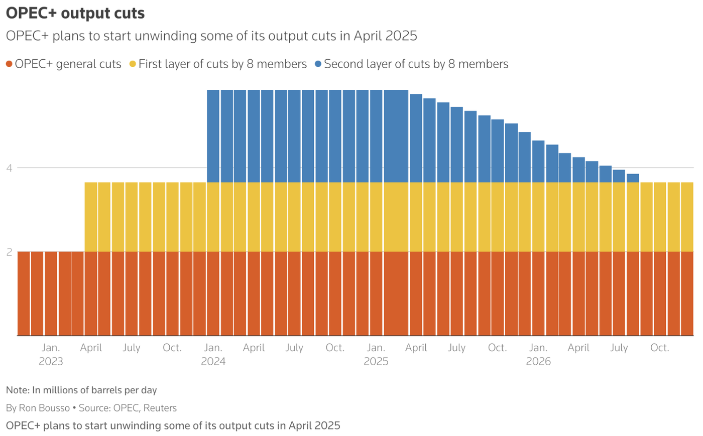 - Higher outputs from OPEC+ members who have been flooding the market due to internal issues.