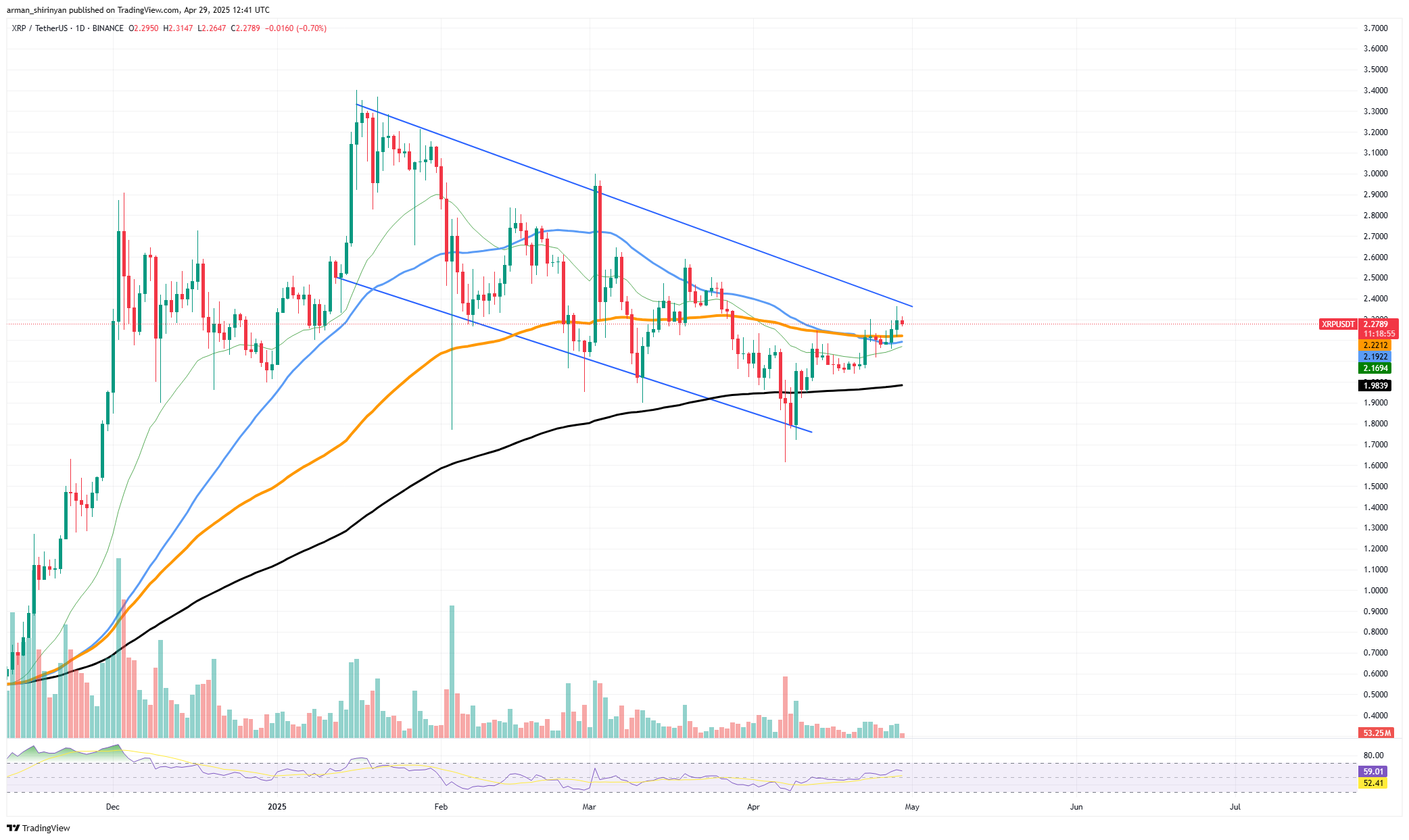 One of XRP‘s biggest technological advances of the year, if not the entire 2025 cycle, may be imminent. The asset is once again trying to break through the upper limit of its long-term descending trendline, but this time the structure underneath it appears different after months of consolidation and rejection at significant resistance levels. Since its mid-April lows, XRP has risen steadily, pushing above the 50, 100 and 200-day EMA, which are now serving as strong dynamic support. It is currently trading at about $2.29.