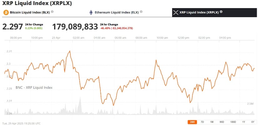 XRP was trading at around $2.29 at press time. Source: XRP Liquid Index (XRPLX) via Brave New Coin