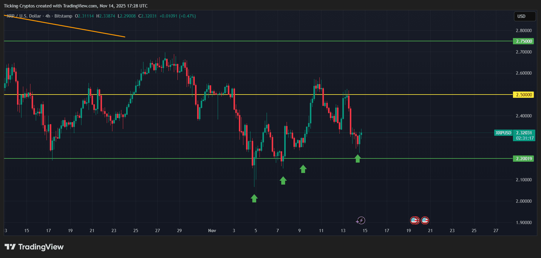- $XRP hat die 2,20 Zone mehrmals getestet und jedes Mal kam ein starker Rebound.
