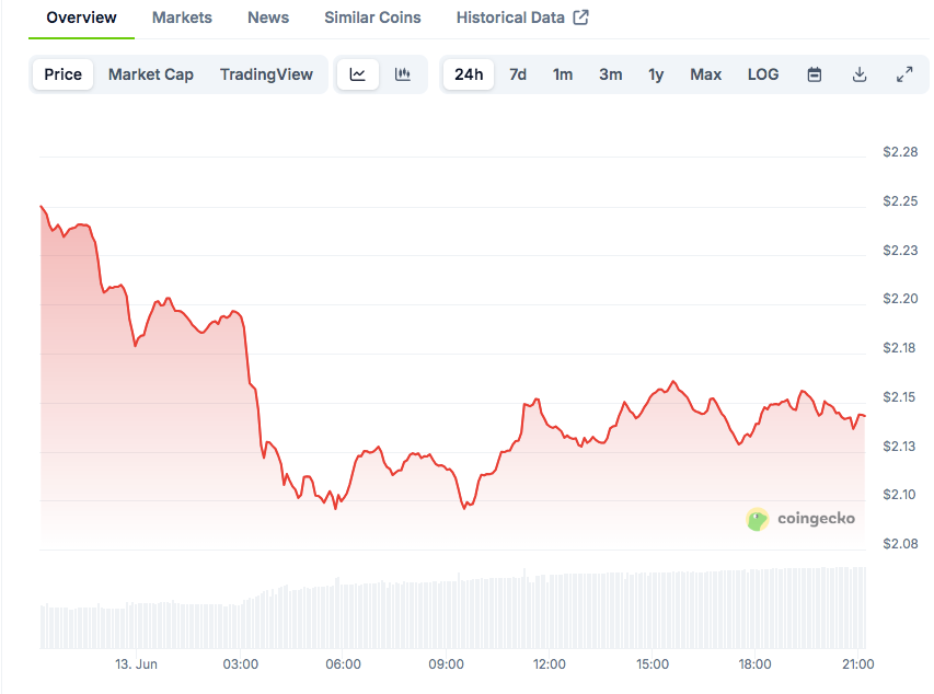 Despite the innovation, XRP’s price has slipped. According to CoinGecko, the token currently trades at $2.14, reflecting a 5.20% daily drop and a 1.81% decline over the past week.