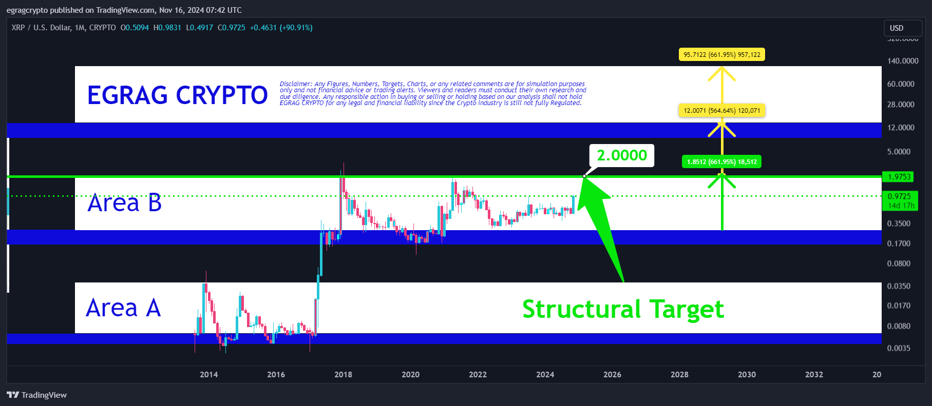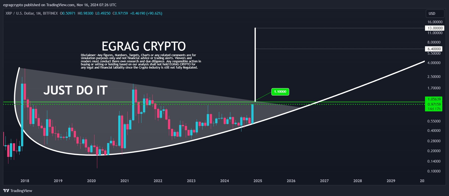 Besides, in another analysis, EGRAG CRYPTO said that the XRP price might rally to $6.4 next, if it closes maintains above the $1.10 resistance. Besides, the analyst also said that post $6.4, the next target for the crypto would be at $13, bolstering market confidence.