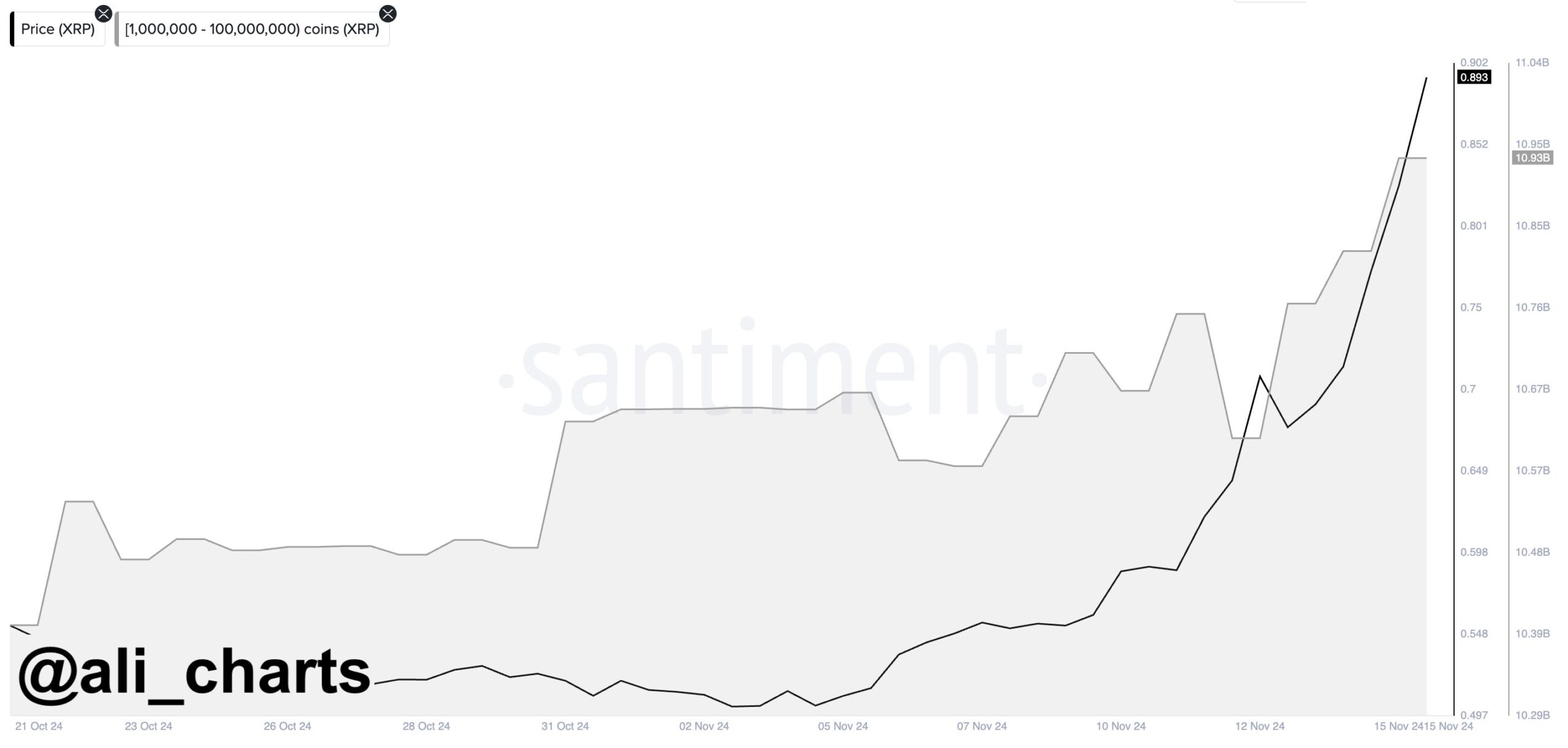 The crypto market noted a strong rally over the last few days, led by a Bitcoin price surge, especially after Donald Trump’s election win. Additionally, in XRP news, Ripple whales have accumulated millions of tokens over the last few days, sparking a rally in XRP.