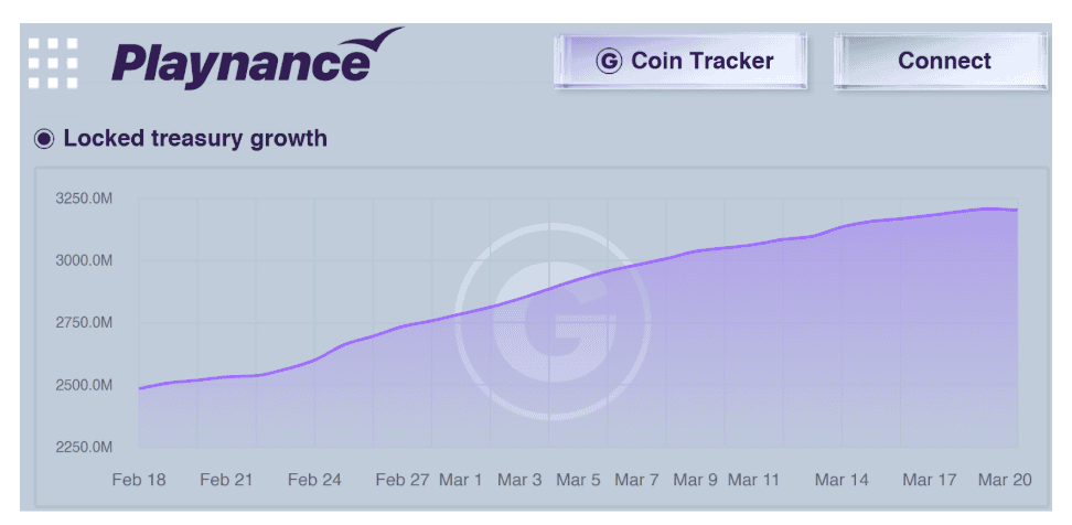 G Coin locked treasury growth chart. Source: Playnance