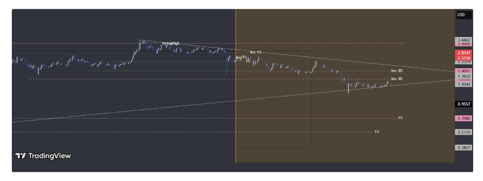 A sustained move above $1.50 could strengthen the bullish case and open the door toward the $1.70–$2.08 range. Conversely, failure to hold above $1.24 may expose the market to renewed downside risk.