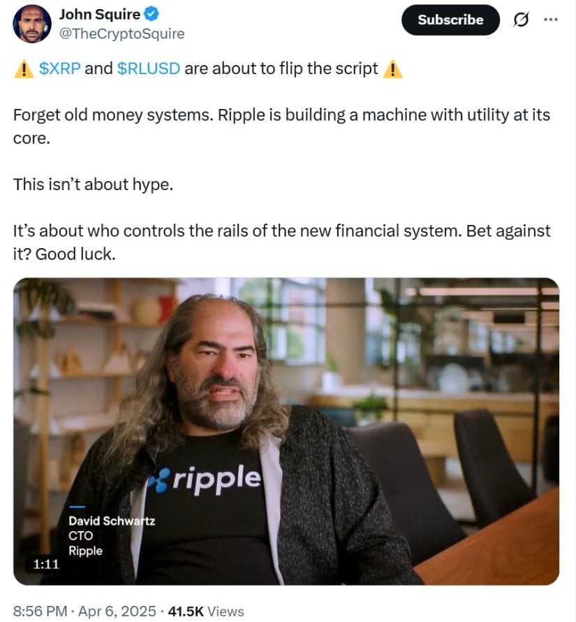 XRP and RLUSD are poised to disrupt traditional finance as Ripple builds the backbone of a utility-driven financial system. Source: John Squire via X