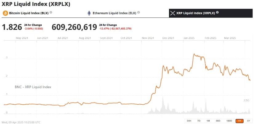Ripple (XRP) was trading at around $1.82, down 3.04% in the last 24 hours at press time. Source: XRP Liquid Index (XRPLX) via Brave New Coin