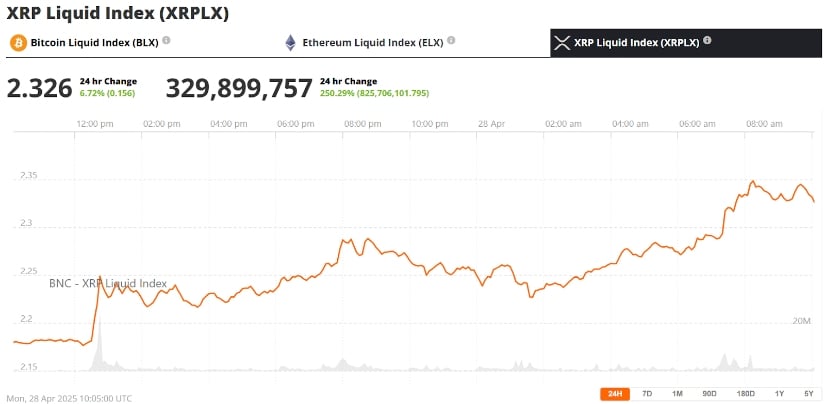 Ripple (XRP) was trading at around $2.32 at press time. Source: XRP Liquid Index (XRPLX) via Brave New Coin