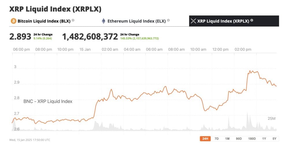 The XRP price hit $2.96 on January 15, 2025, marking its highest level since December 2024. The XRP price has jumped a staggering 441% in 90 days. With a market capitalization now exceeding $167 billion, XRP now trails only Bitcoin and ETH on the BNC market cap table.