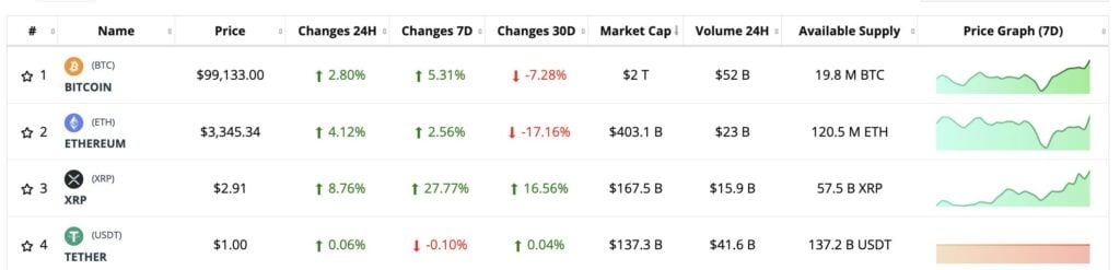 XRP roared past Tether USDt, which dropped to fourth place with a market cap of $137 billion. XRP’s sudden surge is being attributed to Ripple Labs’ key partnerships, new product launches like its stablecoin RLUSD, Ripple’s tokenization initiatives, the likely approval of a spot XRP ETF, and the highly anticipated resignation of SEC Chair Gary Gensler.