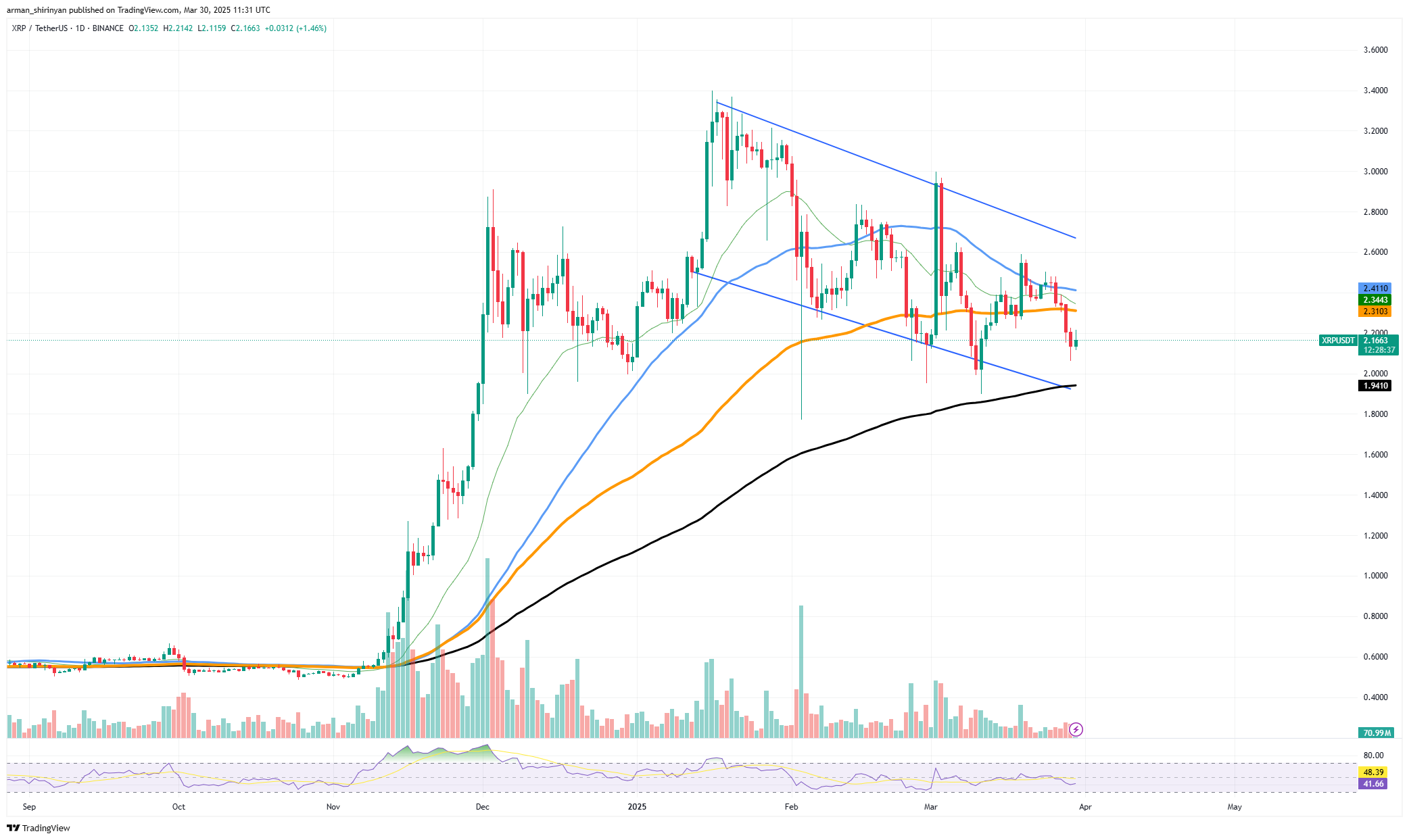 After a slight recovery from yesterday’s decline, XRP is currently trading at $2.19, displaying concerning weakness as the asset teeters perilously close to the $2.00 threshold. Earlier this week the asset dropped as low as $2, and although today’s recovery may provide a brief sense of relief, the bigger picture is still precarious.