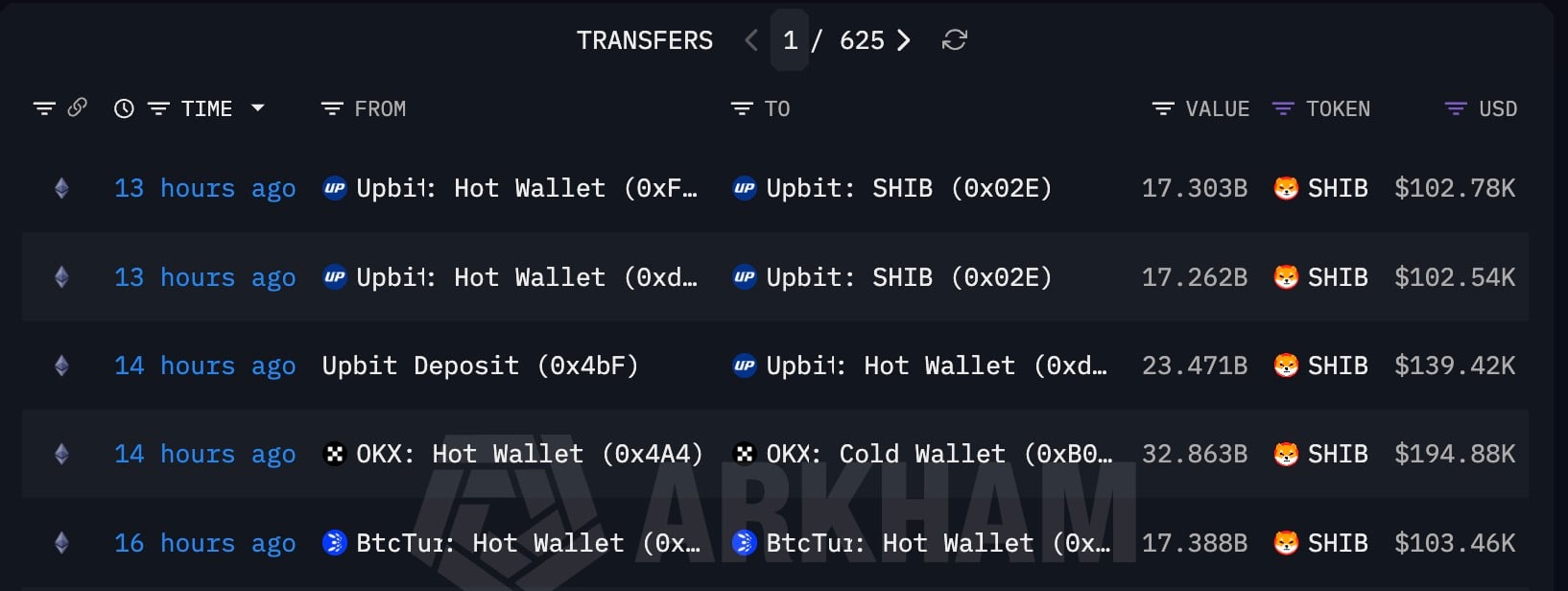 In other news this morning, over the past 24 hours, OKX carried out a major internal asset transfer. Around 32.86 billion Shiba Inu tokens were moved from the exchange hot wallet to cold storage, according to Arkham.