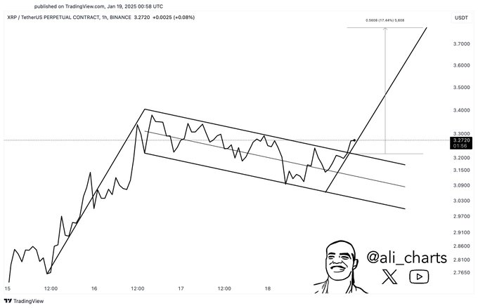 According to Ali Martinez, a market analyst, the price of XRP has broken out from this bullish flag and may rise to $4. XRP broke the $3 mark for the first time since 2018, peaks at $3.40, then dropped to $3.16.