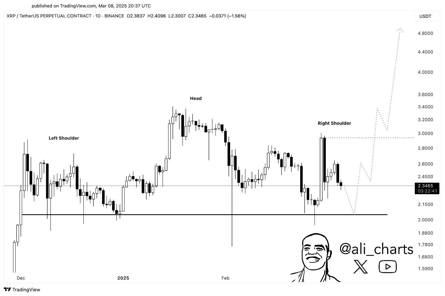 Adding to the bullish outlook, analyst Ali Martinez emphasized XRP’s critical technical positioning. He pointed out that if XRP avoids closing below the head-and-shoulders neckline and instead breaks above the right shoulder, it could invalidate the bearish setup, potentially triggering a breakout toward $5.