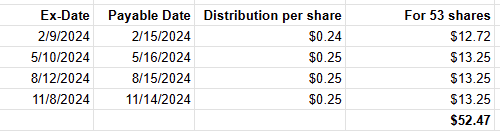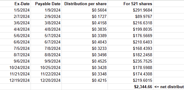Then, the last column in the above spreadsheet shows the total amount of the twelve distributions the fund made to that shareholder in the year 2024.
