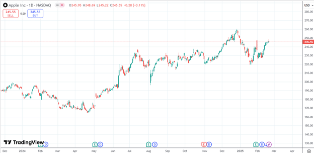 At the end of the year, AAPL was trading at $250.42.