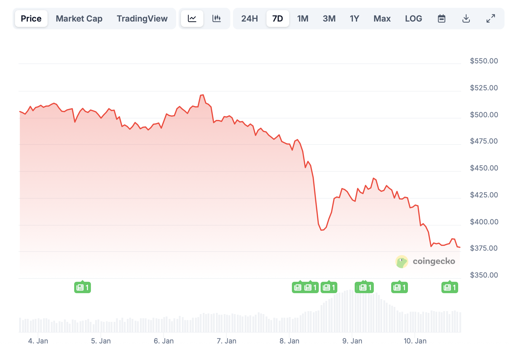 Zcash (ZEC), the second biggest privacy-centric cryptocurrency, is amid the worst performers this week. Zcash’s (ZEC) price lost almost 26% in seven days, plummeting from $432 to $378. As of today, ZEC is almost 50% below its 2025 high.