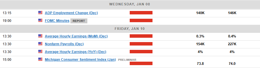 This week, the main highlights are the important non-farm payrolls report and the release of the Fed’s December meeting minutes due on Wednesday and Friday respectively.