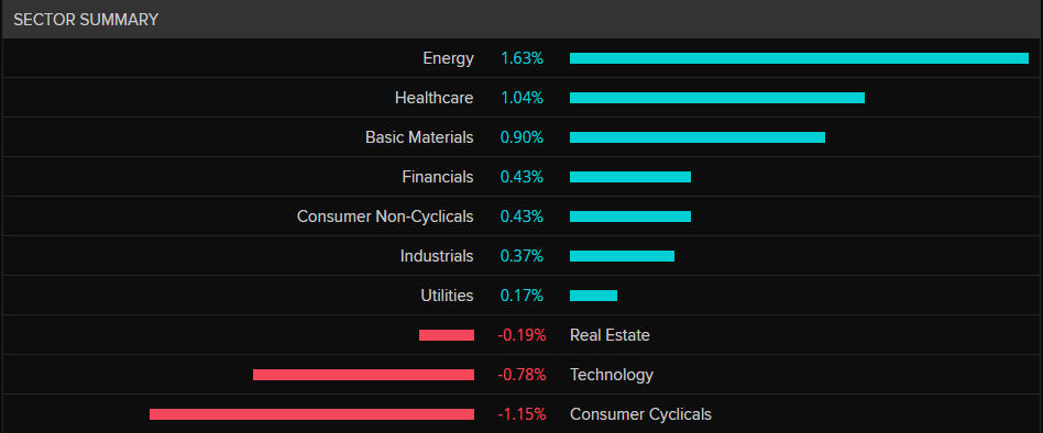 Looking at the sector performance today as well as individual winners and losers thus far, healthcare stocks saw a 1% rise, leading gains in the S&P 500 sectors. Vaccine makers like Moderna, Novavax, and Pfizer jumped due to rising worries about bird flu.
