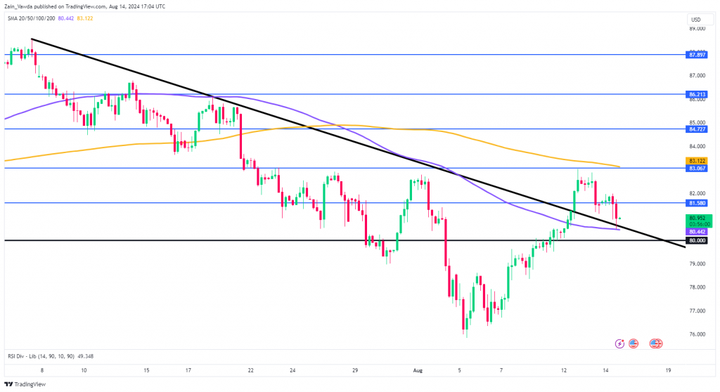 A dip below the 100-day MA brings the 80.00 psychological level into play. Falling below the 80.00 mark would invalidate the bullish setup and could make a retest of recent lows a real possibility.