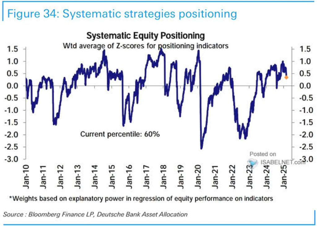A sign that market participants remain concerned about future developments is reflected in the systematic equity positioning chart below. As you can see, systematic equity positioning is in the 60th percentile which indicates that it is not far from a neutral position and does not exhibit a strong bias towards either bullish or bearish positions, a sign of the markets uncertainty.