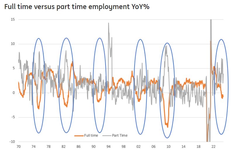 Another point that may concern the Federal Reserve and cited by ING Think Research, is the growing divide between fulltime and part-time employment. According to ING this tallies with the idea that the US is adding largely lower-paid, part-time jobs and is losing full-time, well-paid jobs, primarily through attrition – not replacing retiring or quitting workers.