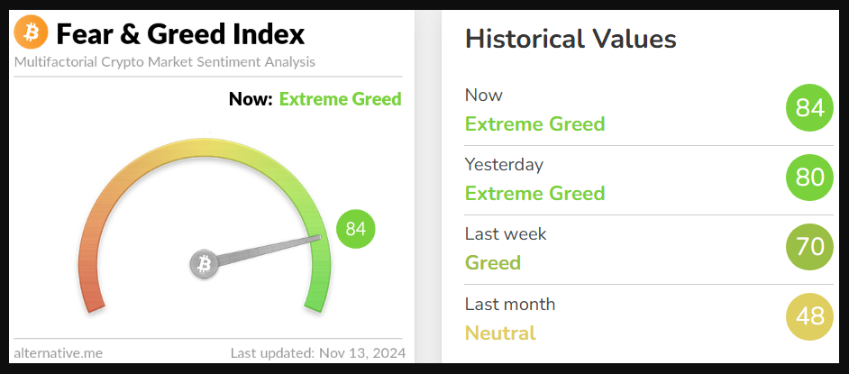 Bitcoin (BTC/USD) Daily Chart, November 13, 2024